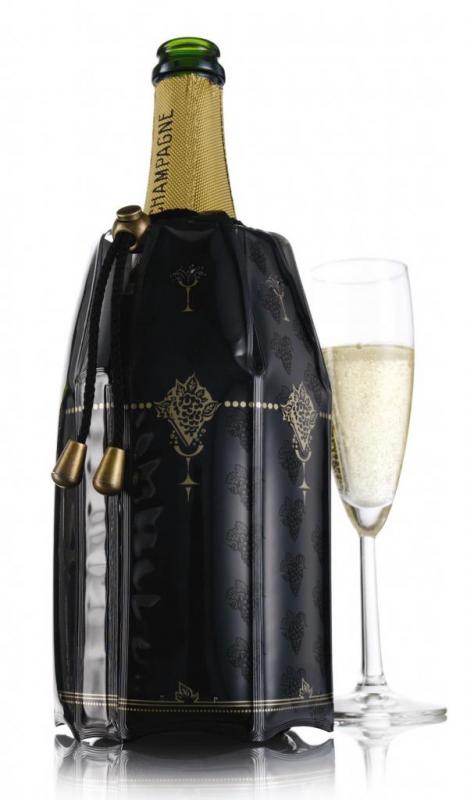 Racirea sampaniei cu rapiditate si mentinerea temperaturii scazute nu mai este o problema cu Racitorul flexibil pentru sampanie. Se utilizeaza cu usurinta, prin simpla introducere a camasii pentru racire in congelator. Cand se doreste savurarea unei sampanii, sticla se imbraca cu acest racitor, iar servirea se poate face dupa doar 5 minute. Datorita design-ului sau ingenios, nu este necesara utilizarea ghetii, impiedicand astfel deteriorarea etichetei sticlei.